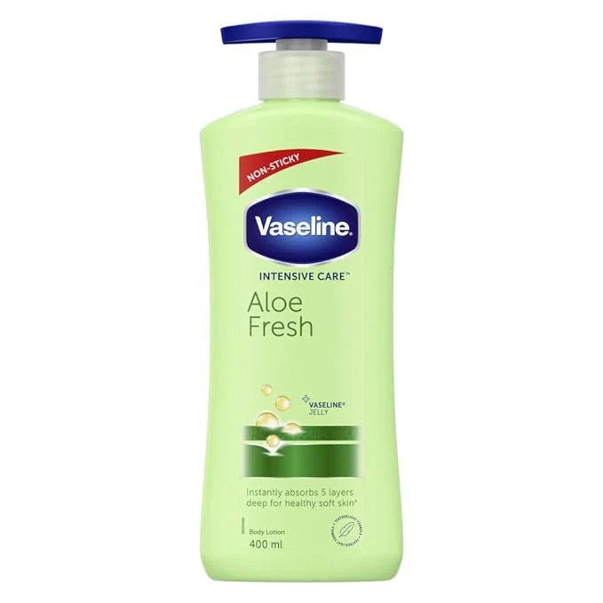 Product Description: Vaseline Intensive Care Aloe Fresh Body Lotion instantly absorbs 5 layers deep for healthy soft skin.